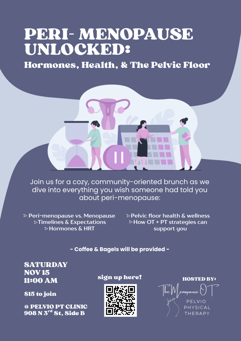 Whether you're perimenopausal, postmenopausal, or simply curious, this workshop is a safe space to learn, move, and be supported in community! Light Refreshments provided.